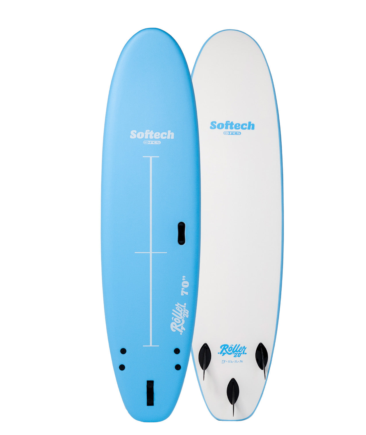 The Roller 2.0 is ultimately a funboard shape with a generous outline and plenty of buoyancy. This popular softboard model is designed with smooth outline curves and a rolled vee bottom to make it easy for learners as they gain confidence catching and riding waves.